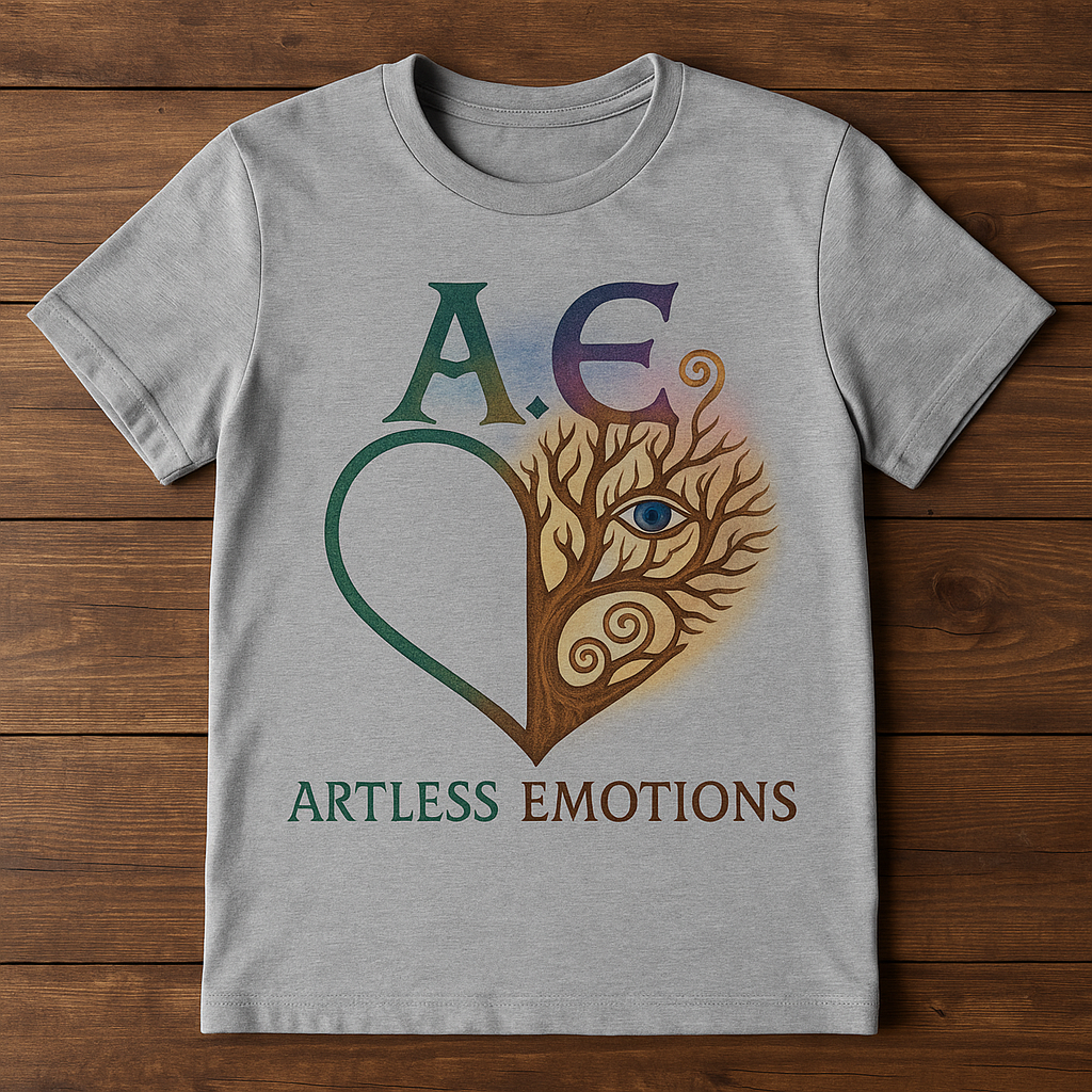 Express your inner wisdom and spiritual journey with our captivating "Artless Emotions" t-shirt. This unique design features a mystical tree of life growing from a heart, symbolizing the deep connection between love, nature, and consciousness.